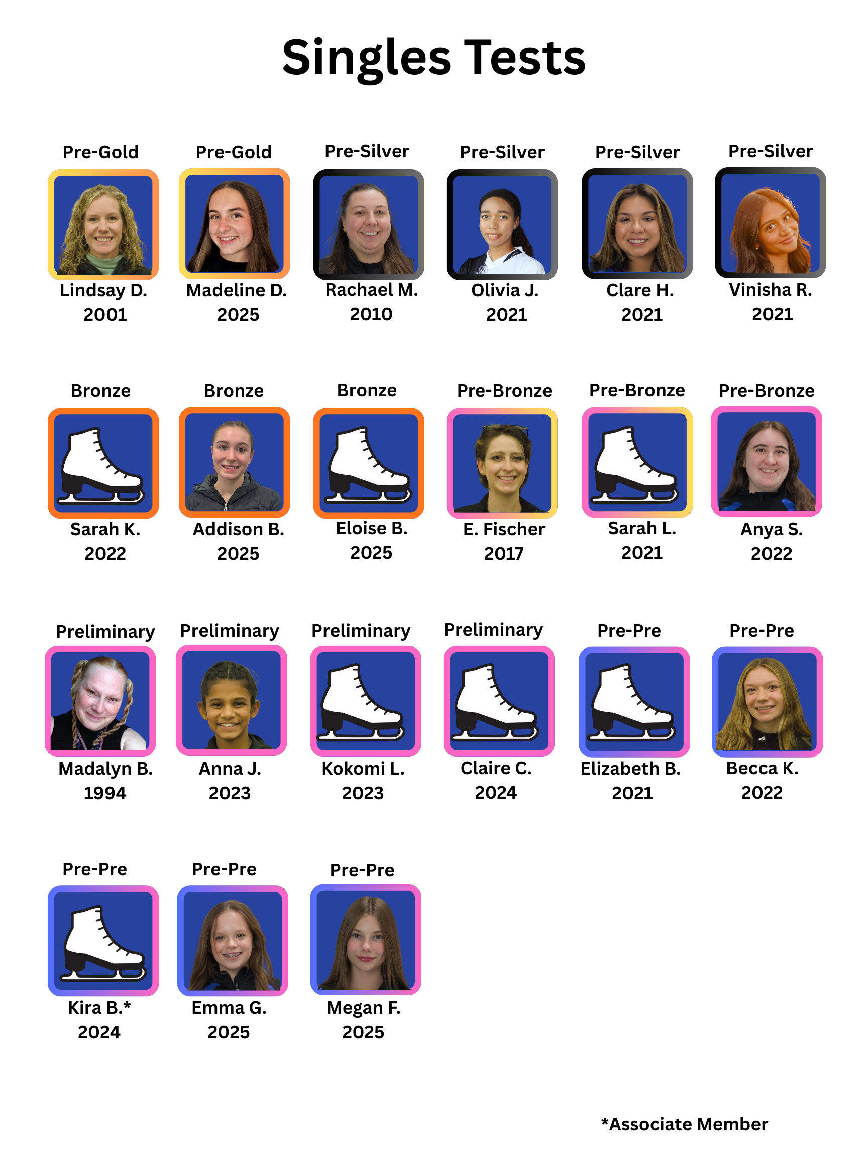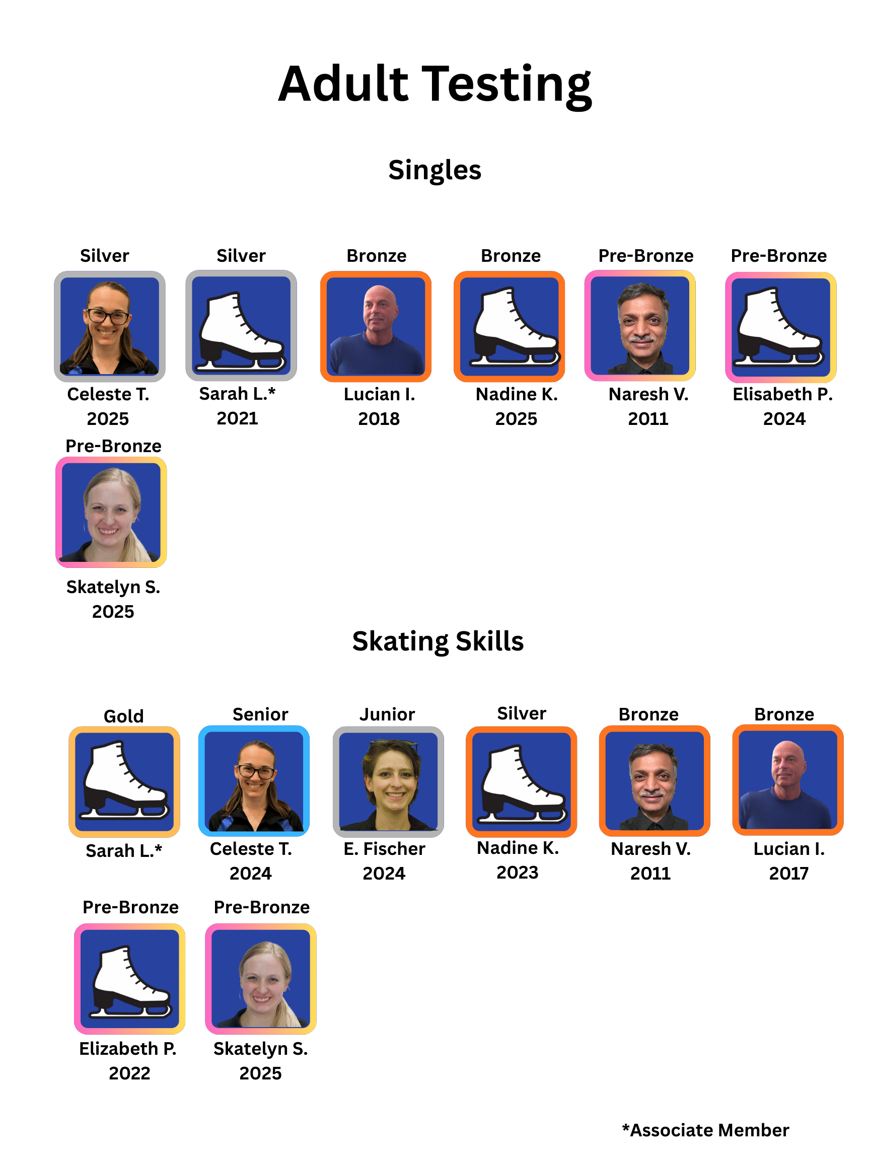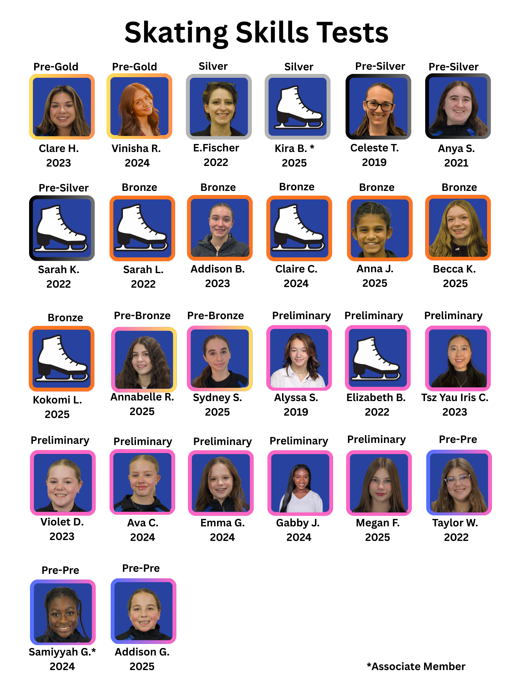 Each month, at the first Thursday Club Ice, we recognize those who passed tests the month before! We also refresh our “Wall of Fame” with our skaters accomplishments!